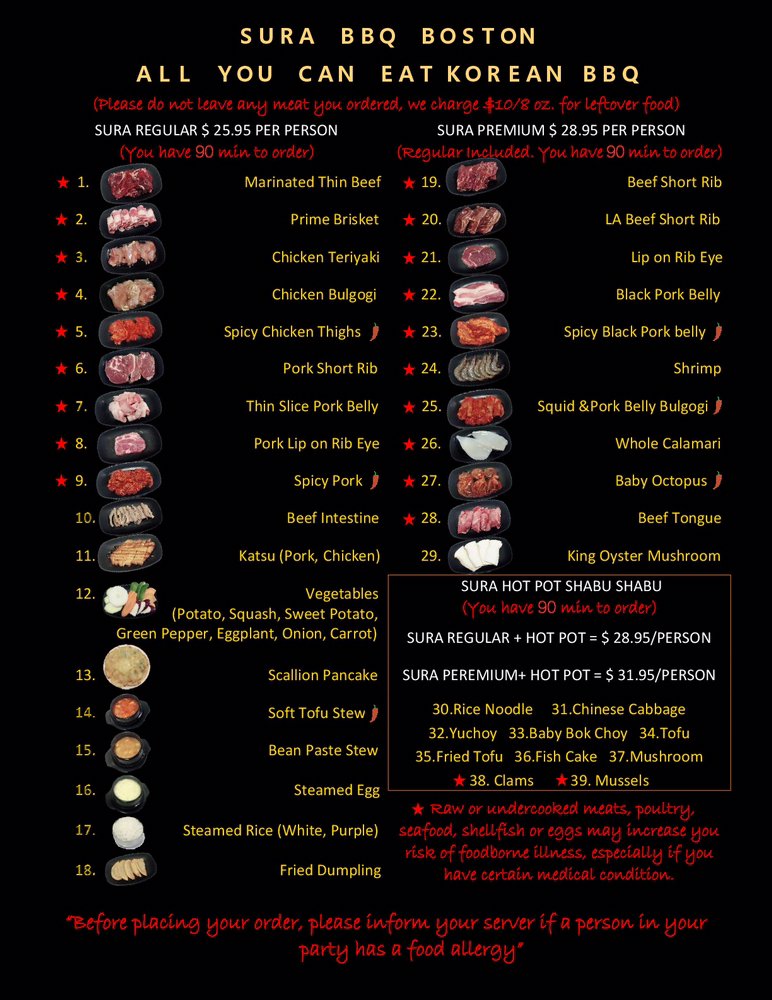 Sura Korean Bbq offers a diverse menu of delicious Korean barbecue options in a casual and inviting atmosphere. Located at 27 Riverside Ave in Medford, MA, this Asian-owned restaurant provides a variety of dining experiences, including street parking and private lot parking, as well as waiter service and free Wi-Fi. The menu features a range of options for both meat lovers and vegetarians, with limited vegetarian choices available. From traditional barbecue dishes to unique Korean specialties, Sura Korean Bbq has something for everyone. The restaurant also offers happy hour specials, outdoor seating, and a full bar for guests to enjoy. With friendly service and a welcoming ambiance, Sura Korean Bbq is a must-visit for those looking to experience authentic Korean cuisine.